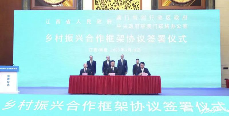 3月18日,江西省人民政府、澳門特別行政區(qū)政府、中央政府駐澳門聯(lián)絡(luò)辦公室在南昌共同簽署鄉(xiāng)村振興合作框架協(xié)議。