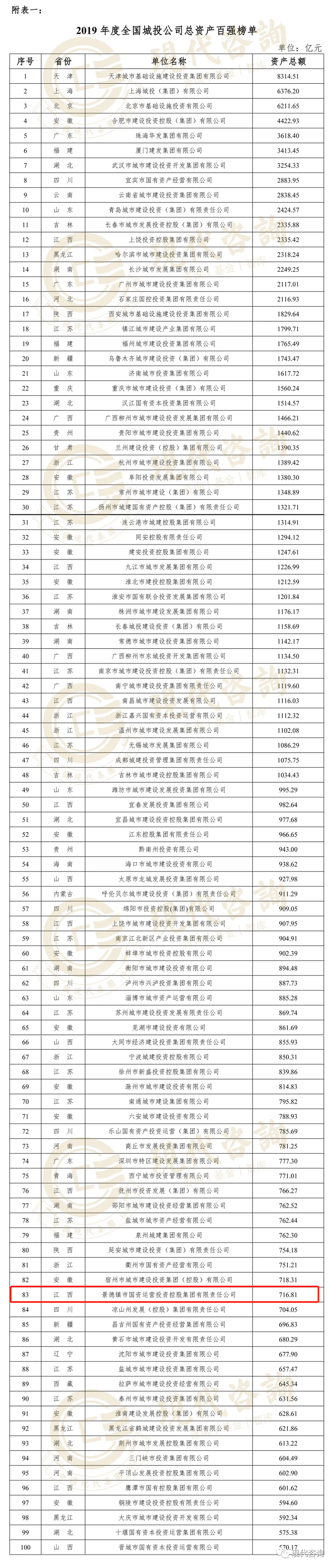 9月17日,全國城投公司百強(qiáng)榜單發(fā)布,集團(tuán)以總資產(chǎn)(2019年度總資產(chǎn)計(jì))716.81億元,排名第83位。
