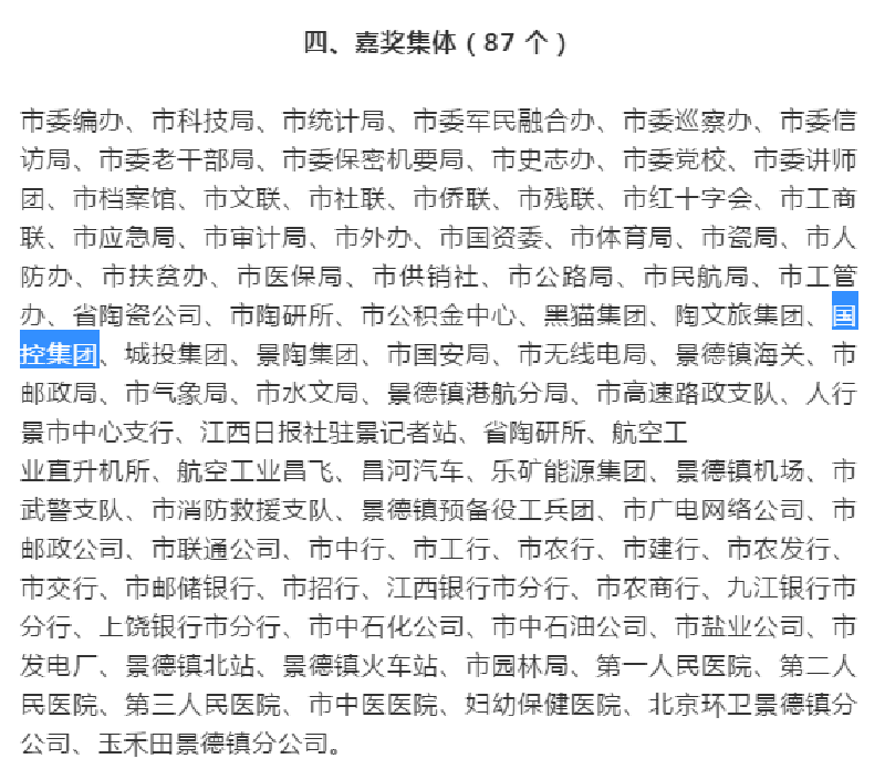 在此次表彰決定中,國控集團(tuán)榮獲嘉獎集體。國控集團(tuán)陳望賢、林莉榮獲個人二等功,喻瑤、劉培靖等同志受到通報嘉獎。