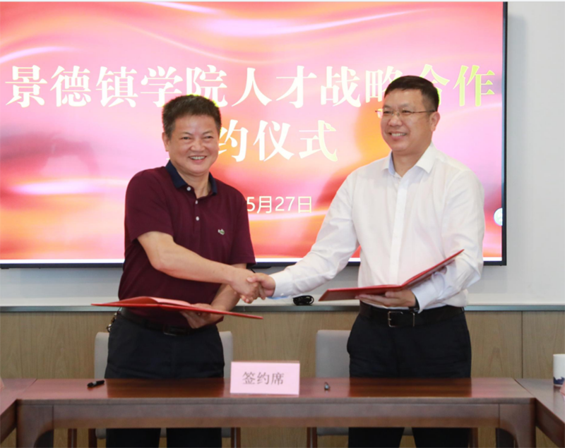 景德鎮(zhèn)學(xué)院黨委委員、副校長吳丁與市國控集團(tuán)黨委副書記周長根正式簽訂戰(zhàn)略合作協(xié)議
