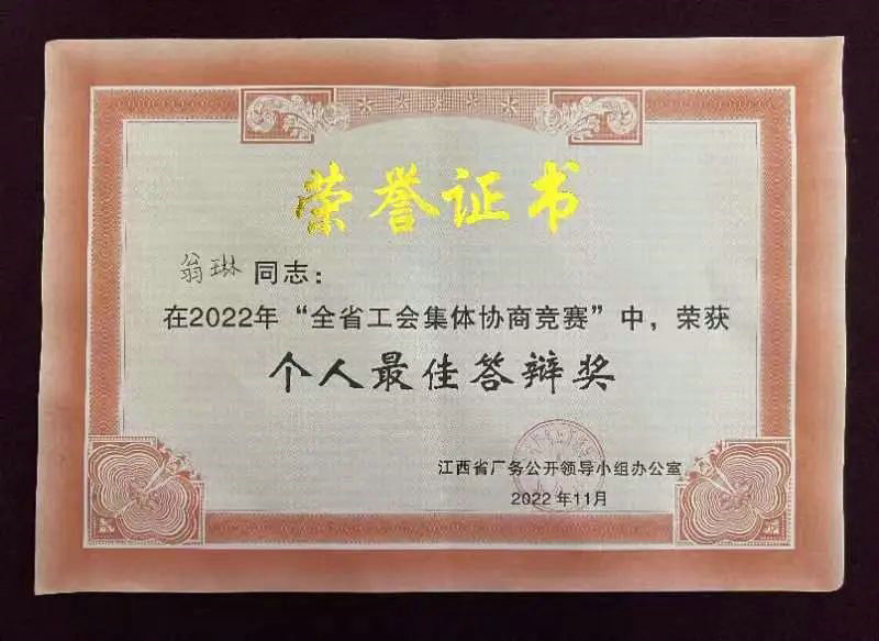 1月13日,全省工會集體協(xié)商競賽在贛州市舉行。通過激烈而有序的交鋒,景德鎮(zhèn)市總工會代表隊榮獲二等獎!來自國控集團的翁琳獲“最佳答辨獎”。