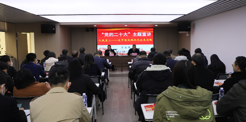 報(bào)告會(huì)上,方永紅首先簡(jiǎn)要梳理了黨的二十大報(bào)告的邏輯關(guān)系,闡明了報(bào)告是我們黨對(duì)改革發(fā)展穩(wěn)定、內(nèi)政外交國(guó)防、治黨治國(guó)治軍的科學(xué)頂層設(shè)計(jì),繼而結(jié)合世界現(xiàn)代化史、中國(guó)近現(xiàn)代史、中共黨史以及新聞熱點(diǎn),對(duì)怎樣理解報(bào)告提出的中國(guó)式現(xiàn)代化做了分享交流。同時(shí)著重分析了中國(guó)式現(xiàn)代化的特點(diǎn)、本質(zhì)要求和前進(jìn)道路上要牢牢把握的五項(xiàng)原則,號(hào)召受眾深刻領(lǐng)悟“兩個(gè)確立”的決定性意義,把思想和行動(dòng)統(tǒng)一到黨中央的各項(xiàng)決策部署上來(lái),在各自工作崗位上踐行習(xí)近平新時(shí)代中國(guó)特色社會(huì)主義思想。