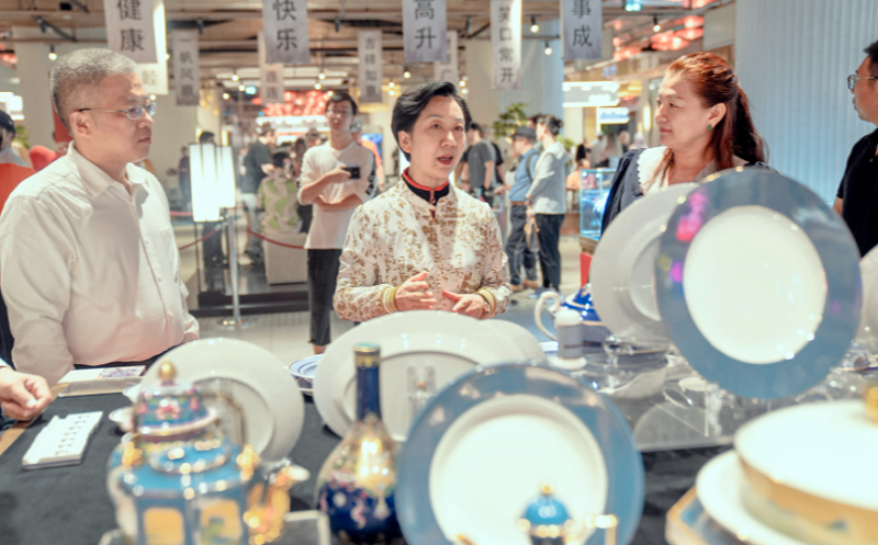 胡雪梅在景德鎮(zhèn)陶瓷官方旗艦店實地調(diào)研。