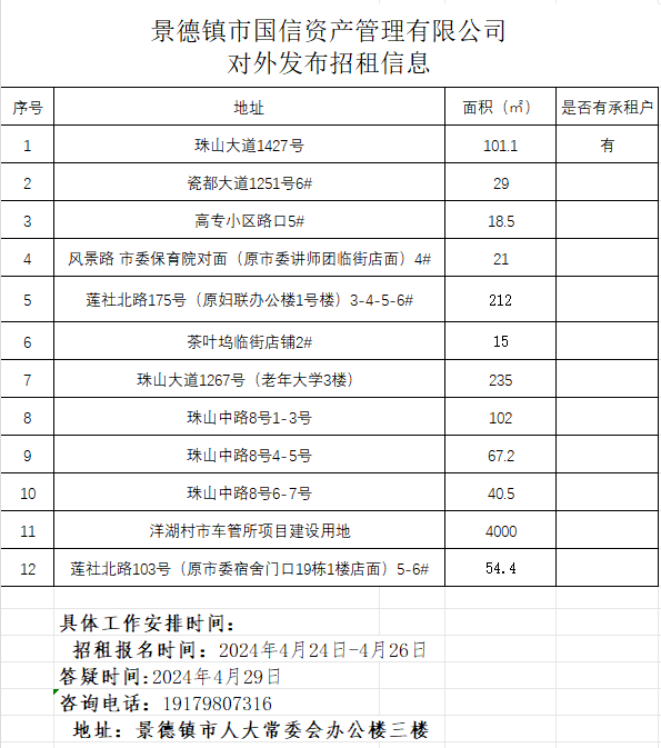 景德鎮(zhèn)市國信資產管理有限公司對外發(fā)布招租信息